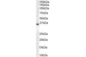 - ELISA: Antibody detection limit dilution 1:16,000. Western Blot: Approximately 35 kDa band observed in human kidney and human liver lysates (calculated MW of 35.6 kDa according to NP_002027.2). Recommended concentration: 0.1-0.3 μg/mL. Immunohistochemistry: In paraffin embedded human kidney, stains epithelial cells of renal tubules and endothelial cells of vessels. The granular staining is compatible with the endoplasmic reticulum association of the protein. This antibody has also been successfully used on Huamn lung showing endothelial staining. Recommended concentration, 3 μg/mL. FACS: A customer has reported successful staining of HEK293S-TetR transfected with DARC receptor at a dilution of 1/1000.