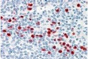 - ELISA: Antibody detection limit dilution 1:16,000. Western Blot: Approximately 60 kDa band in human lymph node and testis lysates after 0.03 μg/mL antibody staining. Immunohistochemistry: In paraffin embedded human spleen shows select staning of splenocytes. Recommended concentration, 3-6 μg/mL.