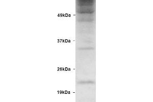 A 1:1000 dilution of ABIN2481445 was sufficient for detection of free ubiquitin in 15 μg of HeLa lysate by ECL immunoblot analysis using Donkey anti-rabbit IgG:HRP as the secondary antibody.