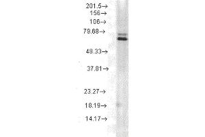 1 μg/ml of ABIN2481744 was sufficient for detection of HSP70 in 20 μg of heat shocked HeLa cell lysate by colorimetric immunoblot analysis using Goat anti-mouse IgG:HRP as the secondary antibody.