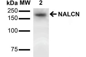 1 μg/ml of ABIN2483033 was sufficient for detection of NALCN in 20 μg of rat brain lysate by colorimetric immunoblot analysis using Goat anti-mouse IgG:HRP as the secondary antibody.