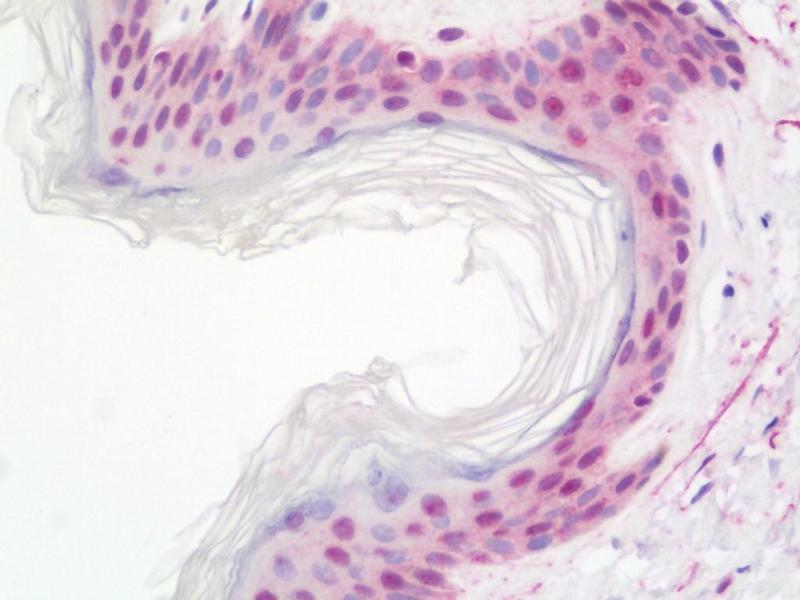Usage: Immunohistochemistry: Antigen retrieval is recommended. Antigen retrieval with citrate buffer will enhance staining. Likely to work with frozen sections. In some cases, the antibody may be diluted further than indicated. Human controls: Breast Carcinoma, Colon Carcinoma, Osteosarcoma, Ovarian Carcinoma. -