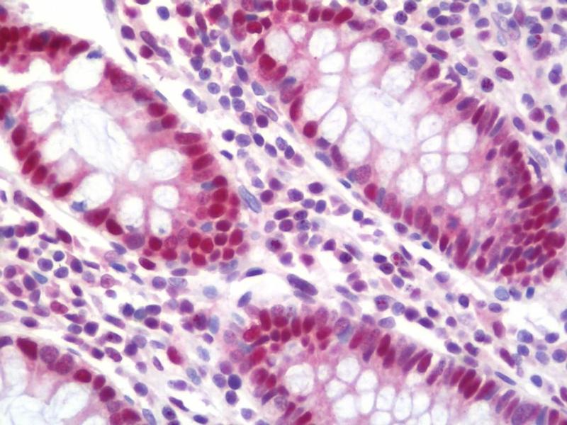 Usage: Immunohistochemistry: Antigen retrieval is recommended. Antigen retrieval with citrate buffer will enhance staining. Likely to work with frozen sections. In some cases, the antibody may be diluted further than indicated. Human controls: Breast Carcinoma, Lung Adenocarcinoma, Non-Small Cell Lung Cancer, Prostate Carcinoma, Stomach Adenocarcinoma, Testicular Seminoma. -