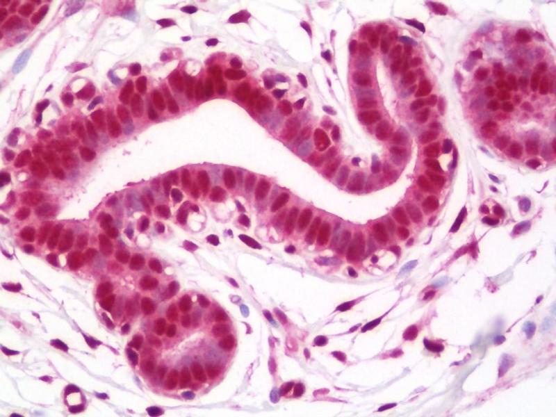Usage: Immunohistochemistry: Antigen retrieval is recommended. Antigen retrieval with citrate buffer will enhance staining. Likely to work with frozen sections. In some cases, the antibody may be diluted further than indicated. Human controls: Breast Carcinoma, Colon Carcinoma. -