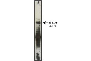 - Lymphoid Enhancer Factor-1 is a transcription factor of the High Mobility Group of DNA binding proteins. It is one member of a family of four proteins referred to as LEF/TCF transcription factors (LEF-1, TCF-1, TCF-3 and TCF-4). These factors play a crucial role in WNT/WIngless signaling, a signal transduction cascade that directs cell differentiation. Aberrant activation of the WNT/Wingless pathway is also a root cause in the genesis of certain cancers such as colon cancer, melanoma and breast cancer.LEF-1 is expressed during development in many different differentiating tissues, and in a few tissues after birth. LEF-1 expression is required for proper development of breast, teeth, hair, whiskers and the trigeminal nerve. It is redundant with TCF-1 (for T Cell Factor-1) for correct development of T lymphocytes in the thymus. LEF-1 is a 399 amino acid protein that appears as a cluster of polypeptides ranging in size between 55-57 kD on SDS-PAGE analysis. Alternative splice forms of LEF-1 and other LEF/TCF family members have been identified, but the expression pattern and relative abundance of these alternative forms have not been well studied. They can appear on westerns as smaller immunoreactive forms.Synonyms: LEF-1, Lymphoid enhancer-binding factor 1, T cell-specific transcription factor 1-alpha, TCF1-alpha