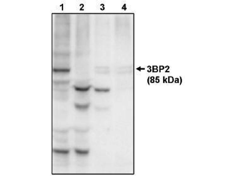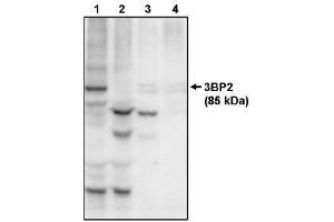 Western Blot: Detects a 85 kDa band in murine fibroblasts transfected with 3BP2. Other applications not tested. Optimal dilutions are dependent on conditions and should be determined by the user.