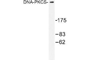The phosphatidylinositol kinase (PIK) family members fall into two distinct subgroups. The first subgroup contains proteins such as the PI 3- and PI 4- kinases and the second group comprises the PIK-related kinases. The PIKrelated kinases include Atm, DNA-PKCS and FRAP. These proteins have in common a region of homology at their carboxy termini that is not present in the PI 3- and PI 4-kinases. The Atm gene is mutated in the autosomal recessive disorder ataxia telangiectasia (AT) that is characterized by cerebellar degeneration (ataxia) and the appearance of dilated blood vessels (telangiectases) in the conjunctivae of the eyes. AT cells are hypersensitive to ionizing radiation, impaired in mediating the inhibition of DNA synthesis and they display delays in p53 induction. DNA-PK is a heterotrimeric DNA binding enzyme that is composed of a large subunit, DNA-PKCS, and two smaller subunits collectively known as Ku. The loss of DNA-PK leads to defects in DSB repair and V(D)J recombination. FRAP can autophosphorylate on serine and bind to Rapamycin/FKBP. FRAP is also an upstream regulator of S6 kinase and has been implicated in the regulation of p27 and p21 expression.Synonyms: DNA-dependent protein kinase catalytic subunit, DNPK1, HYRC, HYRC1, p460
