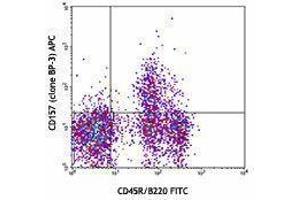 CD157 is an ectoenzyme member of the ADP-ribosyl cyclase family, also known as ADP-ribosyl cyclase 2, BST-1 (bone marrow stromal cell antigen 1), BP-3 antigen. It has a molecular weight between 40 - 46 kD and is a GPI-linked cell membrane glycoprotein which is expressed as a homodimer. CD157 is expressed by macrophages, neutrophils, bone marrow stromal cells, endothelial cells, follicular dendritic cells, and T and B cell progenitors prior to the rearrangement of the antigen receptors. Besides the ectoenzyme activity, it also plays a role in neutrophil migration and adhesion.