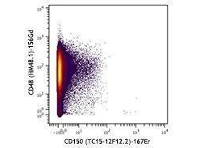 CD150 is a 75-95 kD member of the immunoglobulin superfamily, also known as SLAM (signaling lymphocyte activation molecule) or IPO-3. CD150, a single chain type I transmembrane molecule, is expressed on thymocytes, T cell subsets, B cells, dendritic cells, and endothelial cells. The expression is upregulated upon activation. CD150 expression has been shown to be maintained on Th1 but not Th2 clones. T regulatory cells express a relatively high level of CD150. Antibodies against CD150 have been shown to augment IFN-γ production by Th1 cells, especially when co-stimulated through the TCR. CD150 associates with the src homology 2-domain-containing protein tyrosine phosphatase SHP-2, and this association is thought to be involved in signal transduction. In combination with CD48, CD150 is a useful marker for hematopoietic stem cell studies.