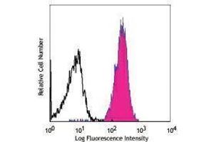 ErbB3/HER3 is a receptor tyrosine kinase and a member of the epidermal growth factor receptor family. erbB3/HER3 binds the heregulin ligands and contains 4 furin-like repeats, 2 cheY receiver domains, and a tyrosine kinase domain with a predicted molecular weight approximately 148 kD. Signaling through the erbB3/HER3 receptor induces proliferation and differentiation in some cell types, the receptor is widely expressed in many tissues including kidney, lung, brain, placenta, skin and stomach. erbB3/HER3 forms constitutively active heterodimers with erbB2/HER2 in a subset of human mammary tumors, expression of erbB3/HER3 reported be linked to favorable outcome in bladder and ovarian cancer. erbB3/HER3 has been shown to interact with a number of proteins including EGF receptor, erbB2/HER2, erbB4, Grb2, Grb7, SOS1, cdk5, SHC, FAK, PTK6, and others. The erbB3/HER3 receptor is extensively phosphorylated at residues T873 and S1123 (by cdk5), Y1199, Y1262, Y1289, and Y1328. The 1B4C3 antibody has been shown to be useful for flow cytometric detection of human erbB3/HER3.
