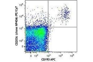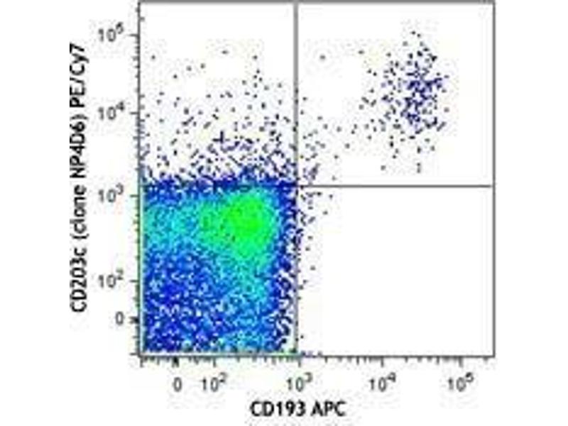CD203c, a transmembrane protein and a member of the ectoenzyme family, is involved in the hydrolysis of extracellular oligonucleotides, nucleoside phosphates, and NAD (possesses ATPase and ATP pyrophosphatase activity). The molecular weight of CD203c was observed to be 130 and 150 kD under reducing conditions and 270 kD under non-reducing conditions. CD203c is expressed on basophils and mast cells, and is highly expressed on activated basophils. Secretory glands in endometrium and glioma cells are also positive. CD203c is a multifunctional ectoenzyme involved in the clearance of extracellular nucleotides whose substrates include nucleoside triphosphates, nucleoside diphosphates, cAMP, and NAD.