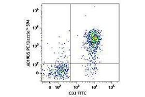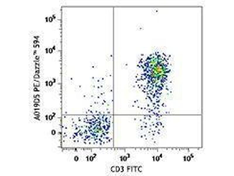 - The antibody was purified by affinity chromatography and conjugated with PE/Dazzle™ 594 under optimal conditions. The solution is free of unconjugated PE/Dazzle™ 594 and unconjugated antibody.