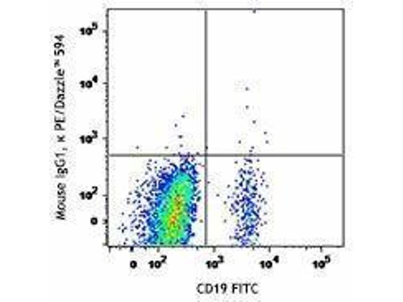The antibody was purified by affinity chromatography and conjugated with PE/Dazzle™ 594 under optimal conditions. The solution is free of unconjugated PE/Dazzle™ 594 and unconjugated antibody.