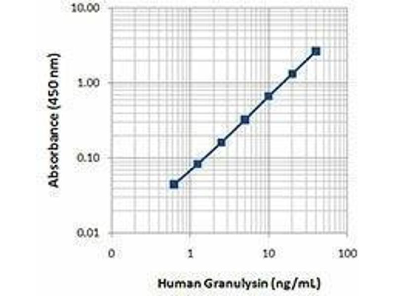 - Granulysin is a cytolytic protein present in granules of human natural killer (NK) cells and activated cytotoxic T lymphocytes (CTLs). Granulysin is synthesized as a 15 kD precursor, which is then cleaved at both the amino- and carboxy-termini into a 9 kD activated form. The 9 kD granulysin is released into the intercellular space between target and effector cells via a granule exocytosis pathway. The 9 kD granulysin is a chemoattractant for T lymphocytes, monocytes, and other inflammatory cells and activates the expression of a number of cytokines, including RANTES, MCP-1, MCP-3, MIP-1α, IL-1, IL-6, IL-10 and IFN-α. High serum levels of granulysin are associated with cytotoxic T cell and NK cell activity, and may thus represent a soluble biomarker for host-cellular immune responses. Serum granulysin has also been proposed as a biomarker for the Th1/Th2 balance. At the cellular level, granulysin may serve as a favorable prognostic marker for certain types of cancer.
