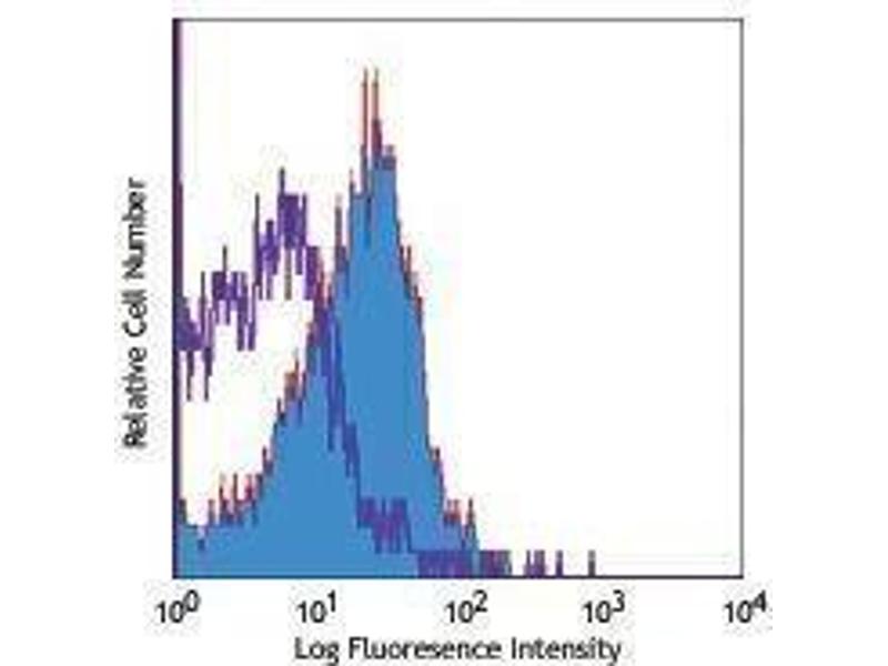 CD210 is a 90-110 kD IL-10 receptor. It is a class II cytokine receptor expressed on thymocytes, T cells, B cells, NK cells, monocytes and macrophages. Ligand binding of CD210 induces Jak1 and Tyk, resulting in STAT1 and STAT3 activation. IL-10 receptor stimulation results in the inhibition of cytokine production and the costimulation of B cell proliferation and differentiation. The only known ligand for this receptor is IL-10.
