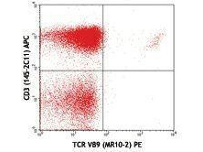 Vβ9 T cell receptor (TCR Vβ9) is a variant of TCR β chain and, along with TCR α chain, forms the TCR heterodimer. In association with the CD3 complex, TCR α/β is responsible for antigen recognition through interaction with MHC-peptide complex to initiate T cell-mediated immune responses. Murine Vβ9 cells recognize the Mtv-43, Mtv-44, and exogenous MMTV (SW) Mls-1 superantigens.Mice bearing a and c haplotypes have Vβ9 gene deletion.