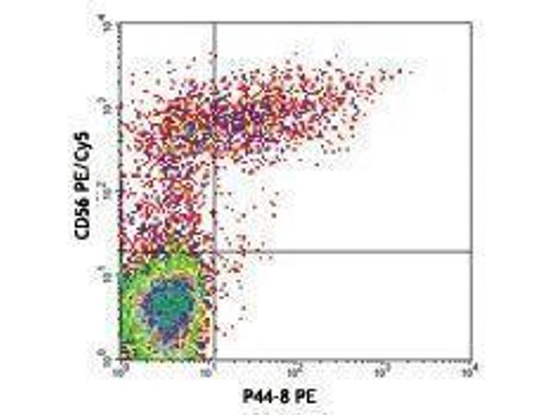 CD336 is also known as activating NK receptor NKp44 (NKp44), natural cytotoxicity triggering receptor 2, and lymphocyte antigen 95 homolog. It is a type I transmembrane protein, member of the natural cytotoxicity receptor family that contains one immunoglobulin-like domain. NKp44 has an apparent molecular weight of 44 kD and three isoforms are produced by alternative splicing. NKp44 is expressed on IL-2 activated NK cells and a subset of γ/δ T cells. NKp44 enhances NK cell mediated cytolysis of virus infected cells and tumor cells. NKp44 has been shown to associate with the intracellular adaptor DAP12.