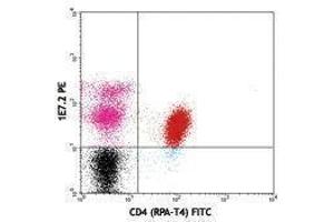 ZAP-70 is a 70 kD protein tyrosine kinase associated with the zeta chain of the T cell receptor. It is expressed in T cells and NK cells and has been shown to be involved in T cell signaling. Defects in ZAP-70 have been linked to selective T cell defects. The ZAP-70 kinase undergoes multiple phosphorylation events after T cell receptor engagement and interacts with a number of proteins involved in signal transduction. Recently, ZAP-70 has been identified as an important prognostic marker in B-cell chronic lymphocytic leukemia (B-CLL). The 1E7.2 monoclonal antibody recognizes human and mouse ZAP-70 and has been shown to be useful for flow cytometry, Western blotting, and immunoprecipitation.