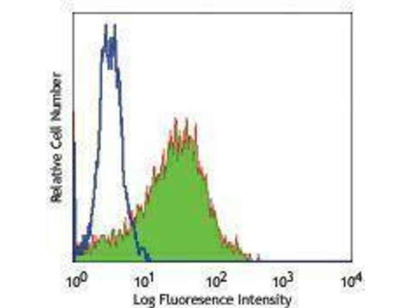 The 16A1 monoclonal antibody recognizes human CD140a also known as the platelet-derived growth factor receptor, alpha polypeptide, PDGFR2, and PDGFRα. CD140a is a cell surface tyrosine kinase receptor for members of the platelet-derived growth factor family. The identity of the growth factor bound to the receptor determines whether the functional receptor is a homodimer or heterodimer composed of both PDGFR-α and -β. CD140a contains three immunoglobulin-like domains and a tyrosine kinase domain with a predicted molecular weight of approximately 123 kD. CD140a is widely expressed on a variety of mesenchymal-derived cells and has been implicated in the development of some tumors including basal cell carcinoma and gastric stromal cell tumors. Binding of A-chain containing PDGF molecules as well as protease-activated PDGF-C molecules can stimulate cell proliferation. CD140a has been shown to interact with a number of proteins including CRK, Grb2, Grb14, SHP2, and others as integrin β3, caveolin-1, and nexin sorting molecules. The PDGFRα is heavily phosphorylated on numerous tyrosine residues through both autophosphorylation and ligand-dependent processes. The 16A1 antibody has been shown to be useful for flow cytometric detection of CD140a.
