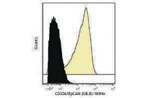 EpCAM (CD326) mediates calcium-independent homophilic cell to cell adhesion. It may also function as a growth factor receptor. It is thought to be involved in maintaining cells in position during proliferation. Expression of EpCAM seems to correlate inversely with the level of E-cadherin (CD324). EpCAM is considered important in tumor biology.