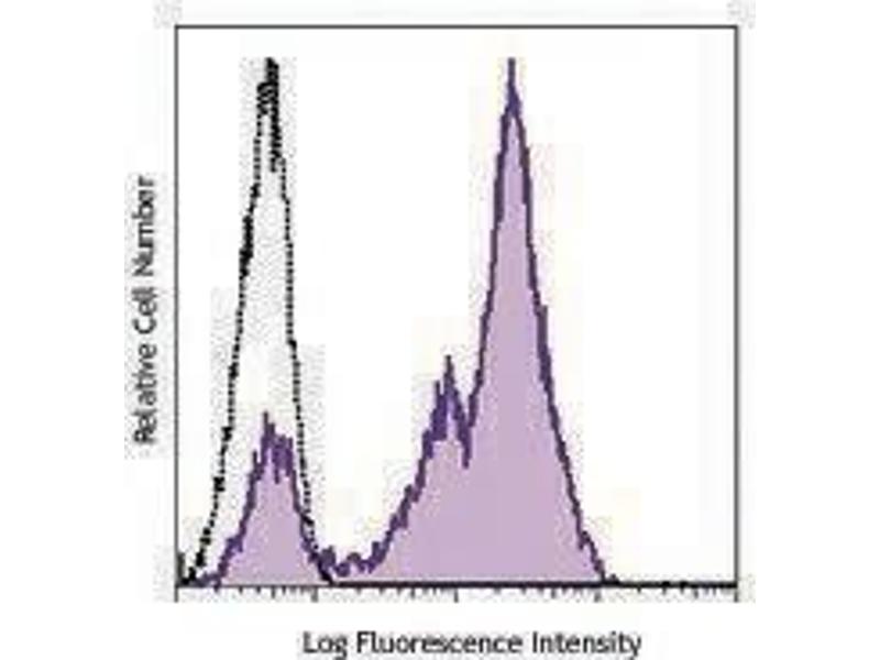 CD5, also known as Leu-1, Ly-1 and T1, is a 67 kD single chain type I glycoprotein that is a member of the scavenger receptor superfamily. CD5 is expressed on T cells, thymocytes, B cell subsets, chronic B lymphocytic leukemia (B-Cells), and peripheral blood dendritic cells. CD5 modulates T and B cell receptor signaling, thymocyte maturation, and T-B cell interactions. One of its ligands is CD72.