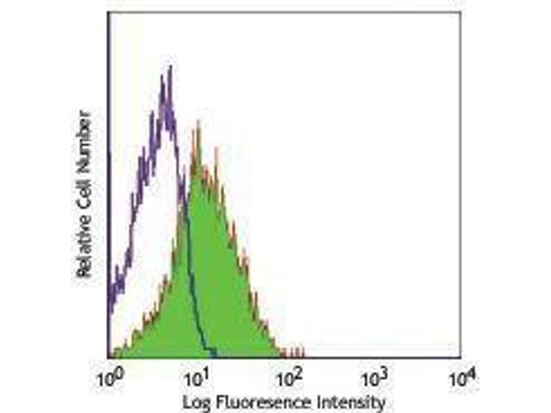 - CD54 is a 85-110 kD type I transmembrane protein also known as ICAM-1. It is expressed on activated endothelial cells, high endothelial venules, T and B cells, monocytes/macrophages, granulocytes, and dendritic cells. The expression of ICAM-1 on the cell surface is potently upregulated by activation, a soluble form of ICAM-1 can be released from the cell surface. CD54 plays a role in cellular adhesion and is involved in inflammation and leukocyte extravasation. CD54 has also been shown to be the major cellular receptor for rhinovirus. ICAM-1 binds to CD11a/CD18 (LFA-1), CD11b/CD18 (Mac-1), CD11c/CD18 (p150, 95) as well as hyaluronan and fibrinogen.