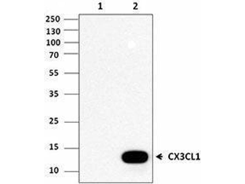 - CX3CL1 is the only member of the CX3C chemokine family that is constitutively expressed in endothelial and epithelial cells, lymphocytes, neurons and microglial osteoblasts. CX3CL1 exists in two forms: as a membrane-anchored form of approximately 100 kD or as a shed 80-95 kD glycoprotein. The chemokine domain is roughly 8 kD, but it migrates at about 13 kD. Its membrane bound form promotes the firm adhesion of rolling leucocytes onto the vessel wall, while its soluble form serves as a potent chemoattractant for CX3CR1-expressing cells such as NK cells, CD14+ monocytes, cytotoxic effector T cells, B cells, neurons, microglia, smooth muscle cells, and tumor cells. The CX3CL1/CX3CR1 axis plays an important role in the pathogenesis of several inflammatory diseases such as allergic pathologies, rheumatoid arthritis, atherosclerosis and tumorigenesis.