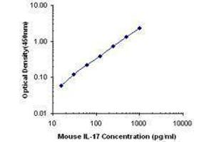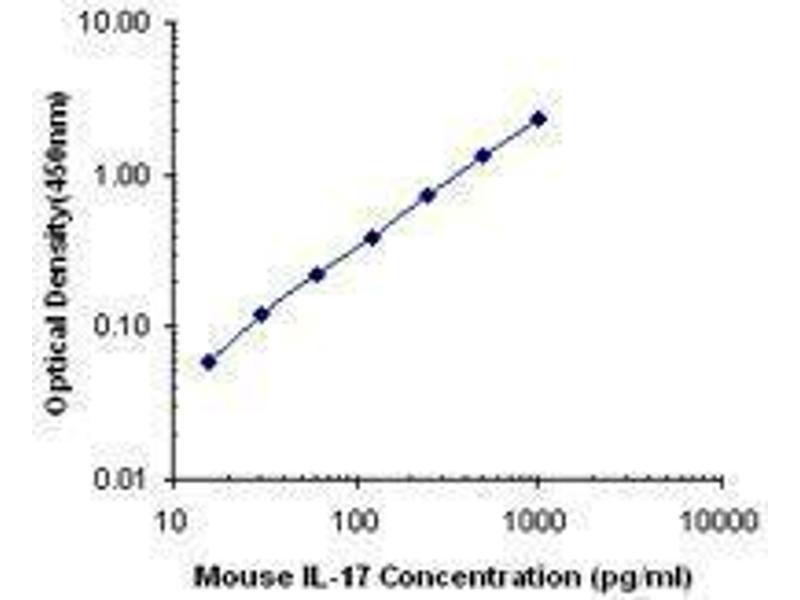 IL-17, also known as CTLA-8, is a T cell-expressed pleiotropic cytokine that exhibits a high degree of homology to a protein encoded by the ORF13 gene of herpes virus Saimiri. IL-17 is produced by Th cells (Th17) that are distinct from the traditional Th1- and Th2-cell subsets. IL-23 plays an important role in triggering IL-17 production. Both recombinant and natural IL-17 have been shown to exist as disulfide linked homodimers. IL-17 exhibits multiple biological activities on a variety of cells including: the induction of IL-6 and IL-8 production in fibroblasts, activation of NF-κB, and costimulation of T cell proliferation. IL-17 is an essential inflammatory mediator in the development of autoimmune diseases. Neutralization of IL-17 with monoclonal antibody is able to ameliorate the disease course.
