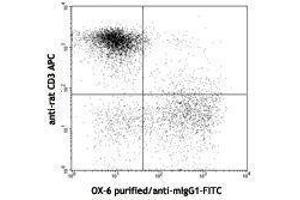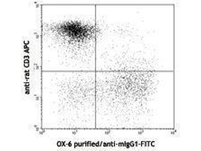 - RT1B is expressed on peripheral B lymphocytes, epidermal Langerhans cells, dendritic cells, some tissue macrophages, subsets of thymocytes, peritoneal mast cells, and small intestinal villus epithelium. The OX-6 antibody reacts with non-polymorphic determinants of the rat MHC class II antigen, I-A equivalent. The OX-6 monoclonal antibody cross-reacts with mouse I-A[k] and I-A[s] alloantigens and with a major subset of splenocytes from NOD (I-A [g7]) mice.