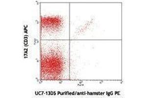 T cell receptor (TCR) is a heterodimer consisting of an α and a β chain (TCR α/β) or a γ and a δ chain (TCR γ/δ). TCR γ/δ belongs to the immunoglobulin superfamily, involved in the recognition of certain bacterial and tumor antigens bound to MHC class I. The TCR γ/δ associates with CD3 and is expressed on a T cell subset found in the thymus, the intestinal epithelium, and the peripheral lymphoid tissues and peritoneum. Most γ/δ T cells are CD4-/CD8-, some are CD8+. T cells expressing the TCR γ/δ have been shown to play a role in oral tolerance, tumor-associated tolerance, and autoimmune disease. It has been reported that γ/δ T cells also play a principal role in antigen presentation. Immobilized UC7-13D5 antibody has been reported to activate TCR-γ/δ-bearing T cells in vitro, and to deplete peripheral TCR-γ/δ-bearing T cells in vivo.