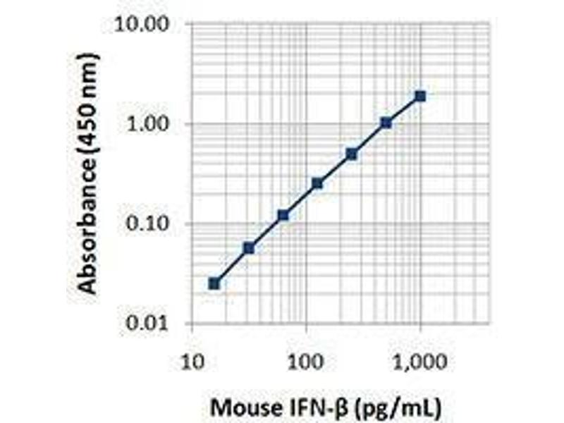 Interferon-β is a member of the type I interferon class. Type I IFNs are involved in the innate immune system, being released non-specifically during the early stage of infection in response to stimuli such as viruses, dsRNA, LPS, and bacterial components. Once secreted by virus-infected or activated cells, they bind to the IFNα/β receptor (IFNAR), which is found on almost all cell types, and, via the JAK-STAT pathway, induce the expression of hundreds of IFN-stimulated genes (ISGs). While the function of many of these proteins remains to be elucidated, a hallmark of type I IFNs is their anti-viral activities, both general and specific against particular viruses. Type I IFNs also regulate cell growth and apoptosis, and exert various immunomodulatory and inflammatory effects. As such, they are also clinically relevant, both as therapeutics and as targets of inhibition for the treatment of various autoimmune diseases and cancer. Mouse IFN-β is a ~20 kD monomeric glycoprotein. It has 50 % amino acid sequence homology with mouse IFN-α, its closest related protein, and 62 % homology with human IFN-β. IFN-β is currently the therapeutic of choice for treating multiple sclerosis.