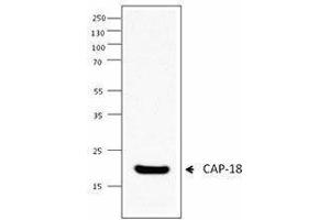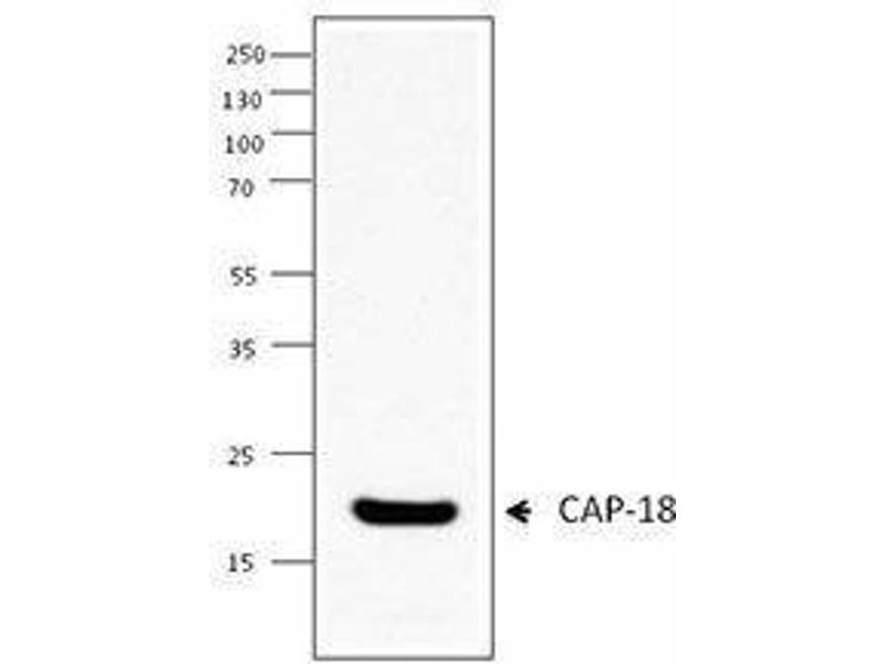 Antimicrobial peptides (AMP) are effector molecules of the innate immune system with direct antimicrobioal and immunomodulatory effects. AMP are produced by epithelial and professional host defense cells such as macrophages or neutrophils. AMP directly inactivate microorganisms and, in addition, have diverse activities on various cell types. In mammals, peptides of the defensin and the cathelicidin families are found. hCAP-18 is the only cathelicidin present in humans. hCAP-18 is a 170 amino acid cathelicidin anti-microbial precursor protein that is proteolytically processed to yield the antibacterial peptide LL-37. The precursor hCAP-18 is found in the specific granules of neutrophils and is expressed in many immune and epithelial cells. Cathelicidin has an established role in host defense. In addition to their direct antimicrobial function, cathelicidin peptides are involved in the modulation of repair and tissue homeostasis, epithelial wound healing, chemoattraction of immune cells, and release of inflammatory mediators from epithelial cells. Recent studies also found that LL-37 significantly regulates endocytic capacity, modifies expression of phagocytic receptors, increases secretion of Th1-inducing cytokines of dendritic cells (DC) generated from blood monocytes, and modulates the response of monocytes and DC to toll like receptor (TLR)-ligands. Moreover LL-37 also modulates the response of neutrophils to bacterial activation.