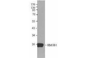 High mobility group protein B1 (HMGB1) belongs to a family of highly conserved proteins that contain HMG box domains. Human HMGB1 is expressed as a 215 amino acid (aa) single chain polypeptide containing three domains: two N-terminal globular, 70 aa positively charged DNA binding domains (HMG boxes A and B), and a negatively charged 30 aa C-terminal region that contains only Asp and Glu. Human HMGB1 is 100 % aa identical to canine HMGB1 and 99 % aa identical to mouse, rat, bovine and porcine HMGB1. HMGB1 is a widely expressed and highly abundant protein. It was originally discovered as a nuclear protein that could bend DNA. Such bending stabilizes nucleosome formation and regulates the expression of select genes upon recruitment by DNA binding proteins. It is now known that HMGB1 also plays a significant role in extracellular signaling associated with inflammation. HMGB1 is massively released into the extracellular environment during cell necrosis. It acts as an inflammatory mediator that promotes monocyte migration and cytokine secretion, and as a mediator of T cell-dendritic cell interaction. In addition, activated monocytes, macrophages, and dendritic cells also secrete HMGB1, forming a positive feedback loop that results in the release of additional cytokines and neutrophils. The cytokine activity of HMGB1 is restricted to the HMG B box, while the A box is associated with the helix-loop-helix domain of transcription factors. Although HMGB1 does not possess a classic signal sequence, it appears to be secreted as an acetylated form via secretory endolysosome exocytosis. Once secreted, HMGB1 transduces cellular signals through its high affinity receptor, RAGE and, possibly, TLR2 and TLR4.