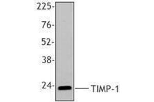 TIMP-1 (Tissue inhibitor of metalloproteinase 1) is a glycoprotein that belongs to the protease inhibitor I35 (TIMP) family. Contains 1 NTR domain, predicted molecular weight 23 kD. TIMP-1 forms complexes with matrix metalloproteinases (MMPs) and inhibits the proteolytic activity of these enzymes. High levels TIMP-1 protein has been found in several types of cancers including breast cancer and this increase associated with a poor patient prognosis. TIMP-1 has also been implicated in the inhibition of apoptosis, promotion of growth, and process of angiogenesis. TIMP-1 may be useful as a prognostic marker in combination with urokinase plasminogen activator (uPA) and plasminogen activator inhibitor type-1 (PAI-1). Clone F31P2A5 has been shown to be useful for western blotting, immunohistochemistry and ELISA of human and monkey TIMP-1.