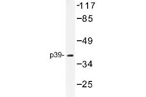 Cyclin dependent kinases, known as Cdks, regulate transitions in the eukaryotic cell cycle. Cdk 5 is required for proper development of the mammalian central nervous system and is predominantly expressed in neurons. Neuronal Cdk5 can be activated by two accessory proteins designated p35nck5a and p39nck5ai, which is also known as p39. The human p39 gene maps to chromosome 2q35 and encodes a 367-amino acid, 39 kDa protein. p35 and p39 both share limited similarity to cyclins and may define a distinct family of cyclin-dependent kinase activating proteins. During embryonic rat brain development, the expression pattern of p39 appears to have an inverse relationship to that of Cdk5 and p35, suggesting that these proteins may have region-specific and developmental stage-specific functions in rat brain. p39 can localize to lamellipodial and fillopodial structures of cells and in growth cones of neurons. In addition, p39 can colocalize with actin, suggesting that p39 plays a role in regulating actin cytoskeletal dynamics in cells. The temporal and spatial expression of p39 in synaptic junctions indicates a possible role of the p39/cdk5 kinase at the synapse.Synonyms: CDK5 activator 2, Cyclin-dependent kinase 5 activator 2, Cyclin-dependent kinase 5 regulatory subunit 2, NCK5AI, P39, P39I