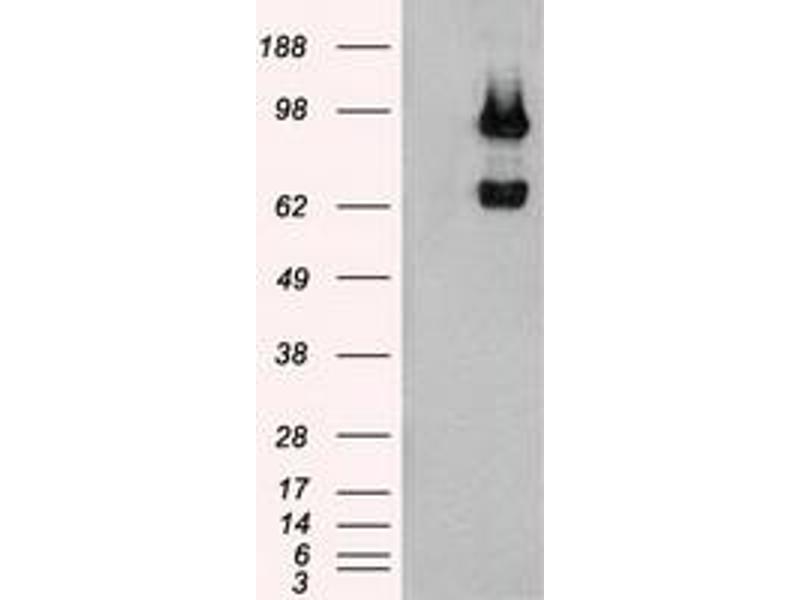- Full-length protein expressed in 293T cell transfected with human USP13 expression vector