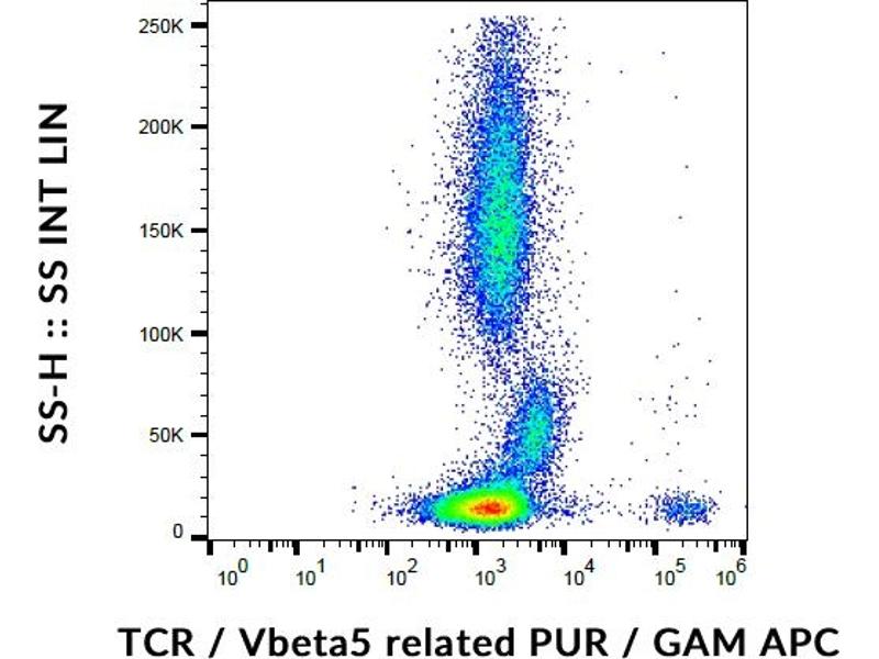 Western blotting: This antibody uniquely recognizes denatured TCR beta chains under the conditions of Western blotting. Functional application: This antibody activates T cells (V beta 5-related subset). Flow cytometry: Recommended dilution: 1-4 μg/mL