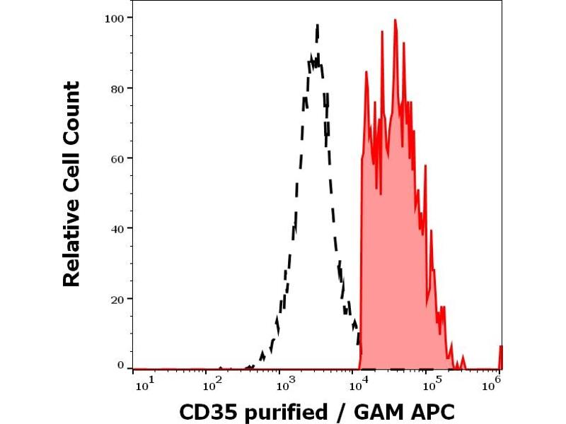 The mouse monoclonal antibody E11 recognizes an extracellular epitope of CD35 (CR1), a type I transmembrane glycoprotein expressed on granulocytes, monocytes, B cells, folicular dendritic cells, erythrocytes, NK and T cell subsets, as well as e.g. on glomerulal podocytes.