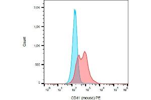 The rat monoclonal antibody MWReg30 recognizes an extracellular epitope of CD41 (GPIIb), a transmembrane glycoprotein (integrin family) composed of two chains GPIIb alpha (heavy chain, 120 kDa) and GPIIb beta (light chain, 23 kDa). CD41 is mainly expressed on platelets and megakaryocytes.