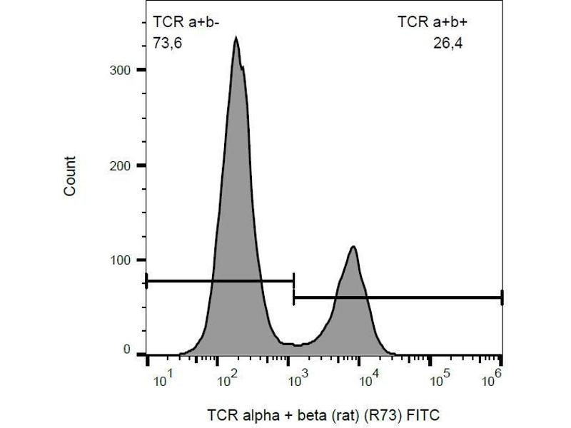 The mouse monoclonal R73 recognizes an extracellular epitope TCR alpha/beta, the dominant subtype of T cell receptor expressed in peripheral blood.
