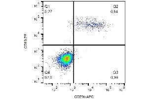 Flow cytometry: The reagent is designed for analysis of human blood cells using 10 μL reagent / 100 μL of whole blood or 106 cells in a suspension. The content of a vial (1 ml) is sufficient for 100 tests.