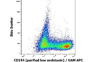 The mouse monoclonal antibody 24-31 detects an extracellular epitope of CD154 / CD40L (CD40-ligand), a 39 kDa cell surface type II glycoprotein expressed predominantly on activated CD4+ lymphocytes.