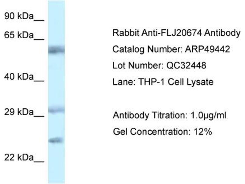 - This is a rabbit polyclonal antibody against FLJ20674. It was validated on Western Blot.