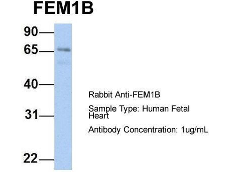 - This is a rabbit polyclonal antibody against FEM1B. It was validated on Western Blot using a cell lysate as a positive control.