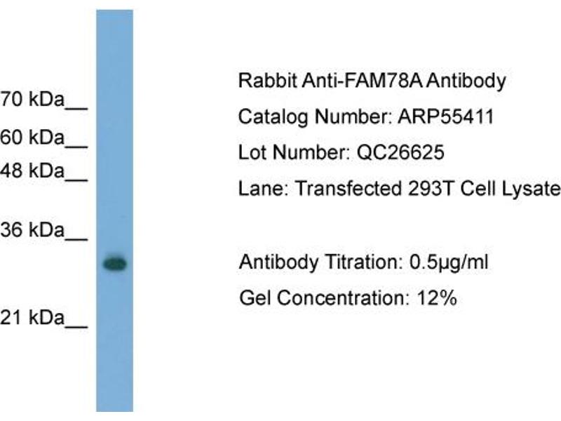 - This is a rabbit polyclonal antibody against FAM78A. It was validated on Western Blot.