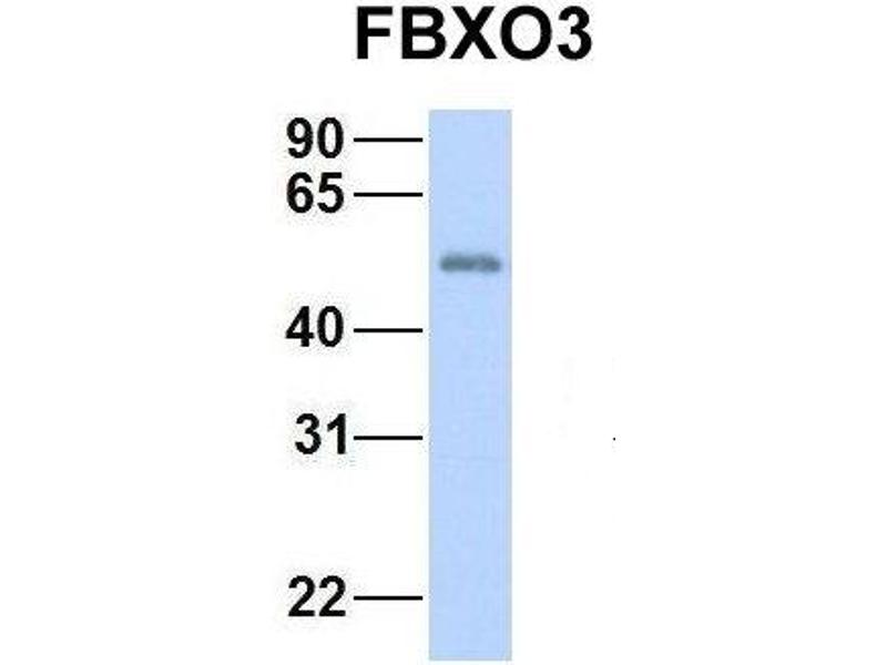 - This is a rabbit polyclonal antibody against FBXO3. It was validated on Western Blot using a cell lysate as a positive control.