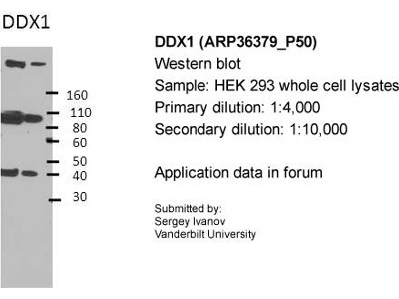 - This is a rabbit polyclonal antibody against DDX1. It was validated on Western Blot using a cell lysate as a positive control.