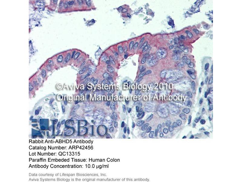 - The immunogen is a synthetic peptide directed towards the C terminal region of human ABHD5
