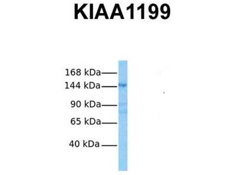 - This is a rabbit polyclonal antibody against KIAA1199. It was validated on Western Blot using a cell lysate as a positive control.
