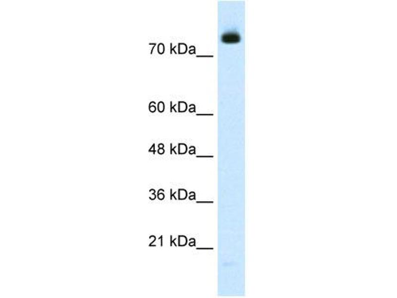 The function remains unknown. Western blots using two different antibodies against two unique regions of this protein target confirm the same apparent molecular weight in our tests.